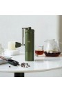 - Корпус из анодированного алюминия с рифлёной фактурой надёжно лежит в руке, а складная ручка делает кофемолку удобной в хранении и перевозке.