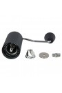 Кофемолка. жернова: 38 мм нержавеющая сталь; материалы: алюминий, титановый пластик; ёмкость бункера 25г; пошаговая регулировка настроек; габариты: 5x17 см ; вес: 430г.
