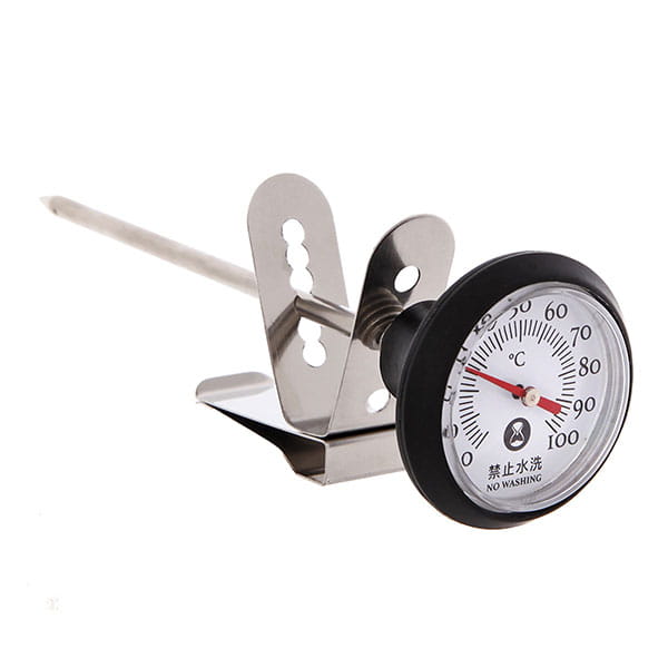 Простой и практичный в использовании термометр с клипсой-держателем предназначен для измерения температуры молока и других напитков.