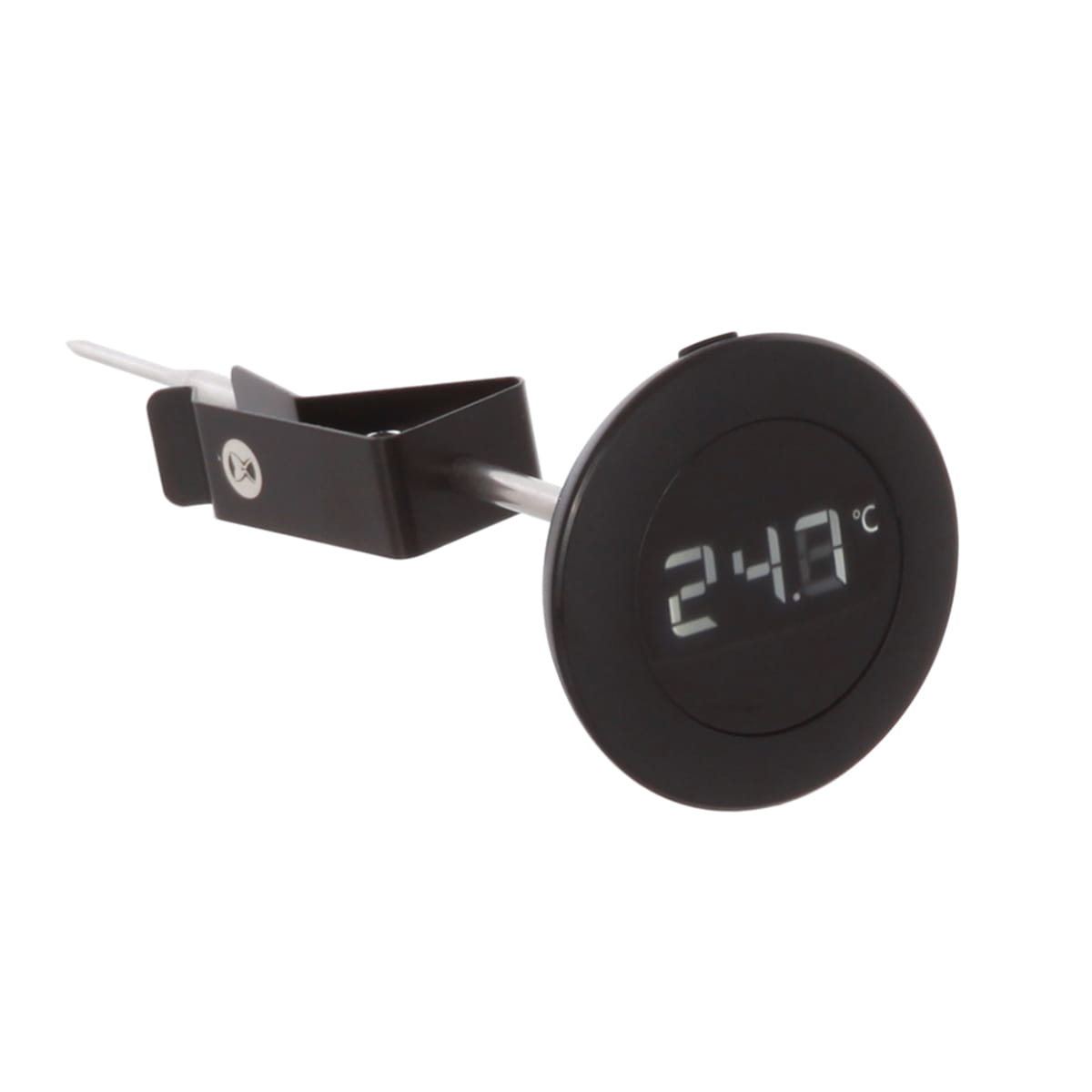 Простой и практичный в использовании электронный термометр c крупным цифровым дисплеем и клипсой-держателем предназначен для измерения температуры молока и других напитков.